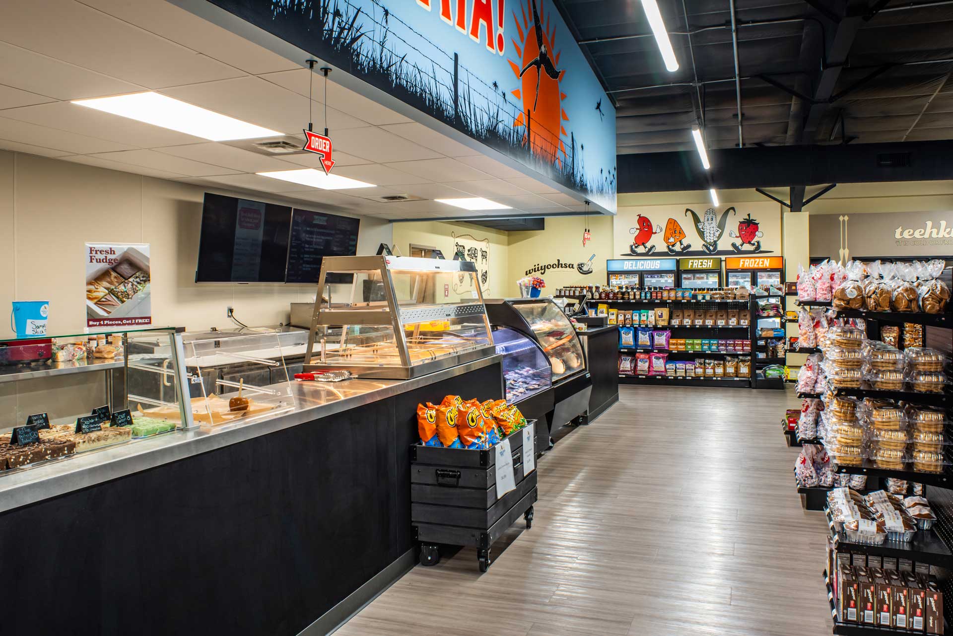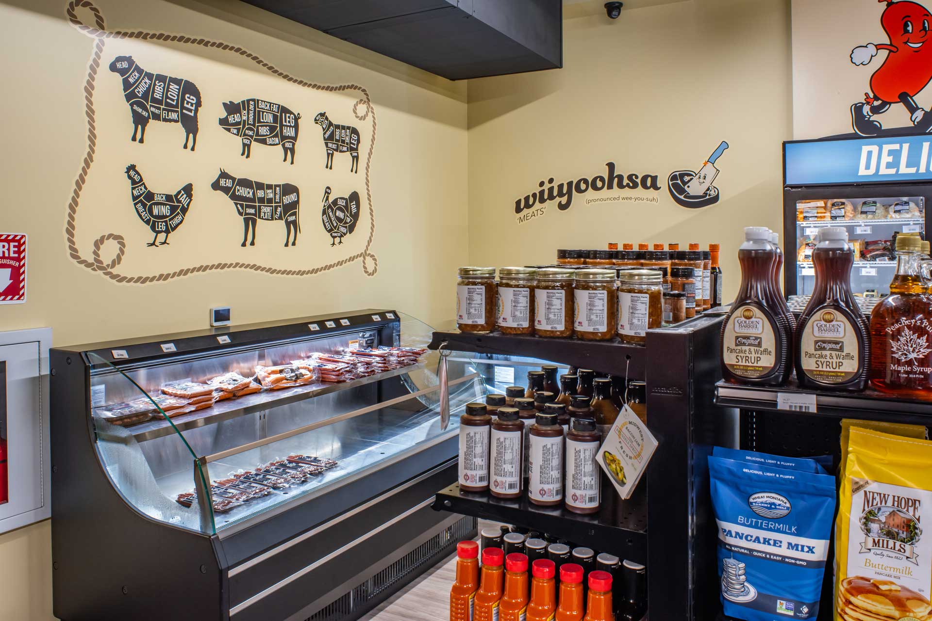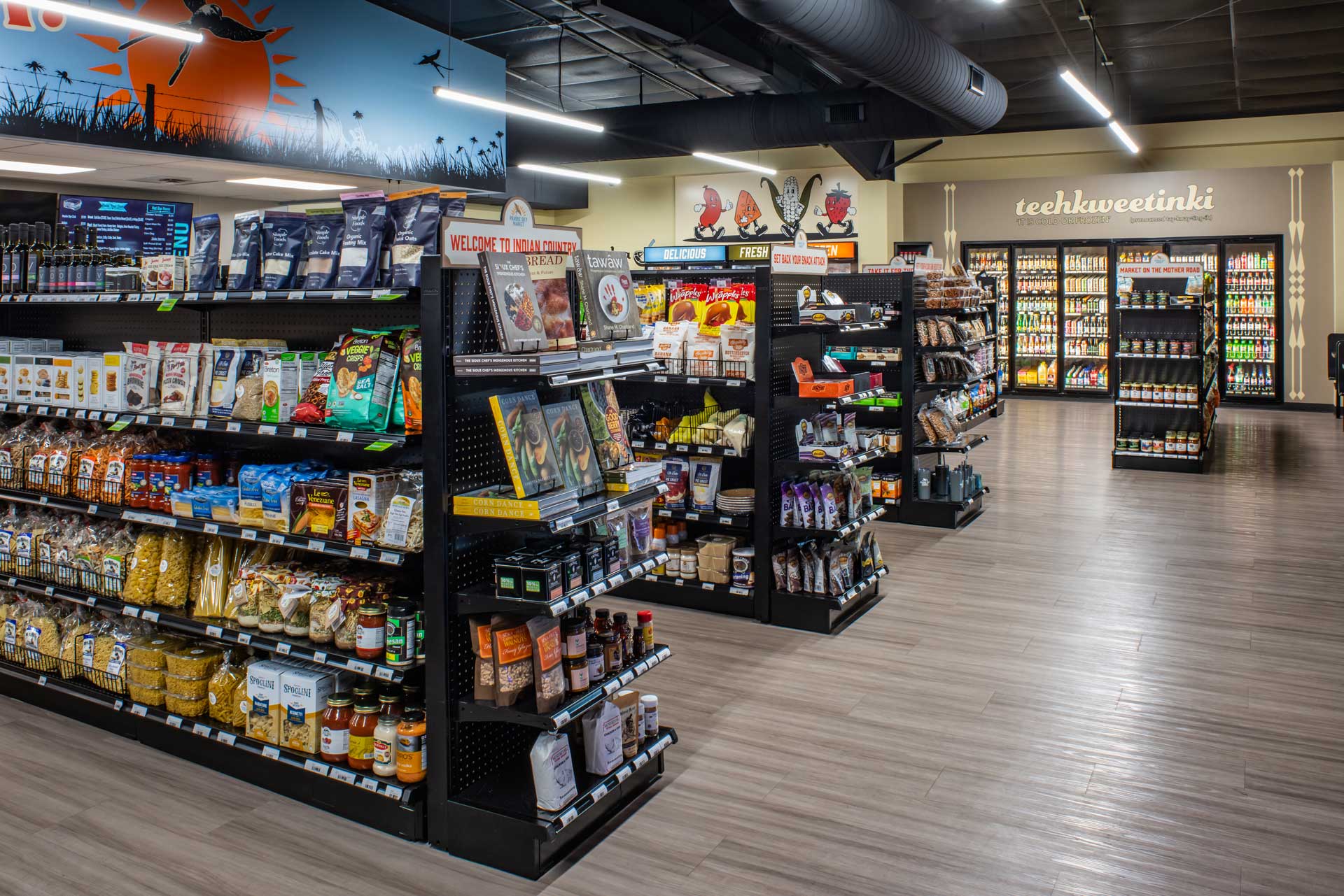 This 8,000sf facility was designed and constructed to serve multiple functions, a full-service market and café. The market showcases locally sourced goods, fresh produce, frozen items, specialty foods, and meats processed at the Miami Tribe’s Food Processing Plant, while the café offers hot meals, snacks, and grab and go options prepared in a state-of-the-art commercial kitchen.